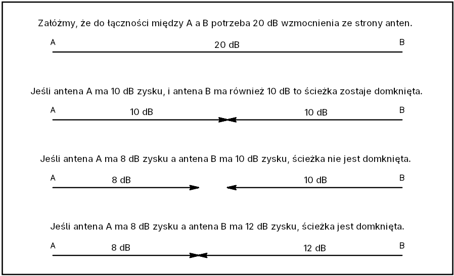 O ile „lepsza” musi być antena, aby zrobić jak dużą różnicę? Wykres na Rysunku 3 przedstawia hipotetyczną ścieżkę komunikacyjną i relację między antenami na obu końcach.